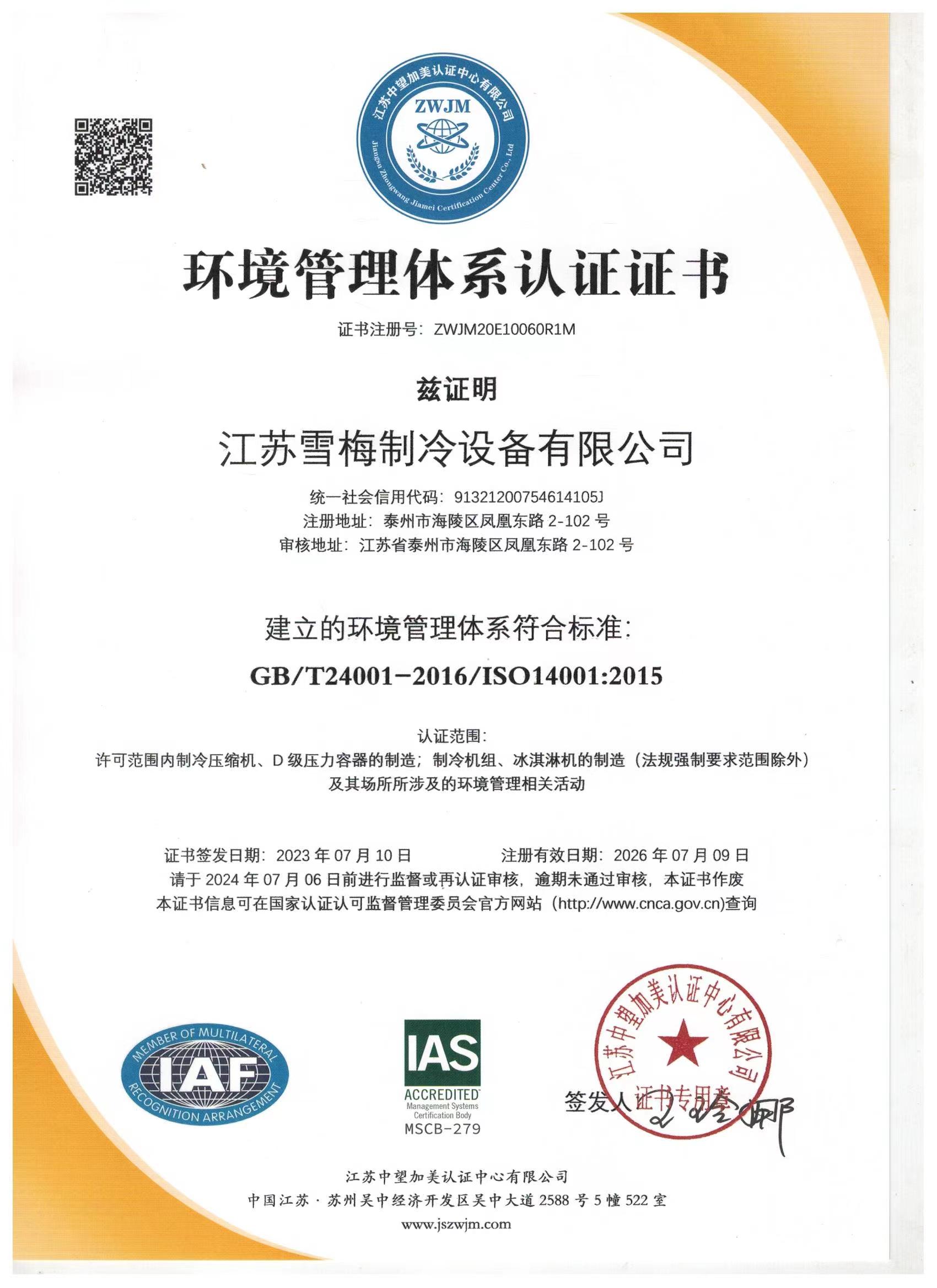 江蘇雪梅制冷設備有限公司是致力于“雪梅”品牌制冷設備研究開發(fā)和制造的高科技企業,是聯合國環(huán)保署和中國政府確定的生產環(huán)保節(jié)能型半封閉制冷壓縮機的示范企業。